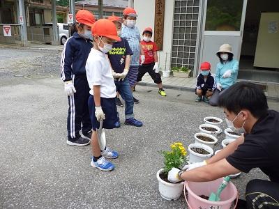 ホウセンカの苗の植え替え 3年生 呉市立和庄小学校 10年4月から11年9月